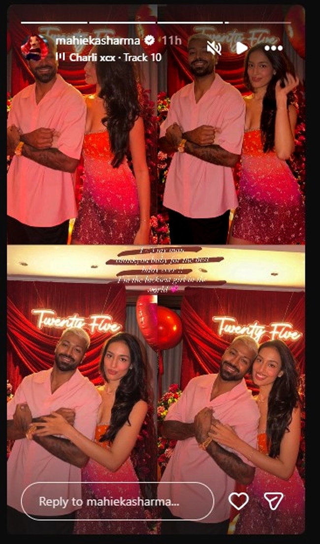 माहिका ने बर्थडे सेलिब्रेशन से कुछ तस्वीरों का कोलाज बनाकर भी शेयर किया है, जिसमें वो हार्दिक संग पोज देती नजर आ रही हैं. दोनों का रोमांटिक अंदाज काफी किलर है. फोटो शेयर करते हुए माहिका ने हार्दिक पर प्यार भी लुटाया है. उन्होंने लिखा- मुझे अपने मैन से प्यार है. अभी तक के सबसे बेस्ट बर्थडे के लिए थैंक्यू बेबी. मैं दुनिया की सबसे लकी लड़की हूं.